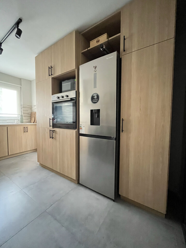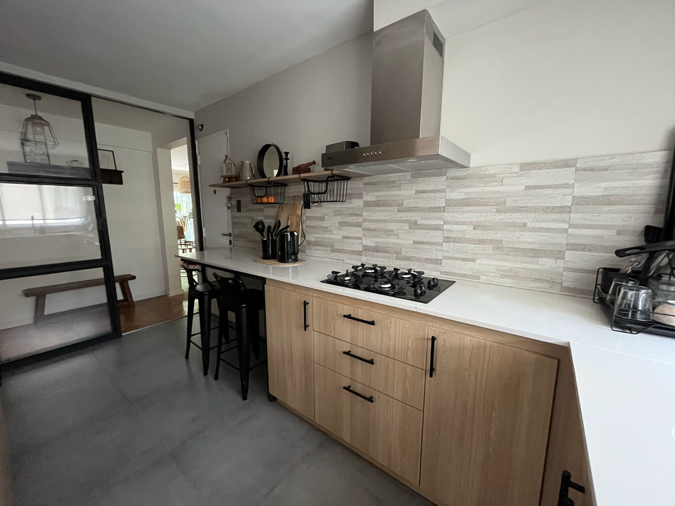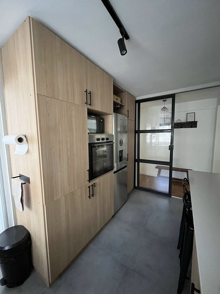 Cocina definida con muebles aéreos y bajo mesada, equipada con horno empotrado y anafe