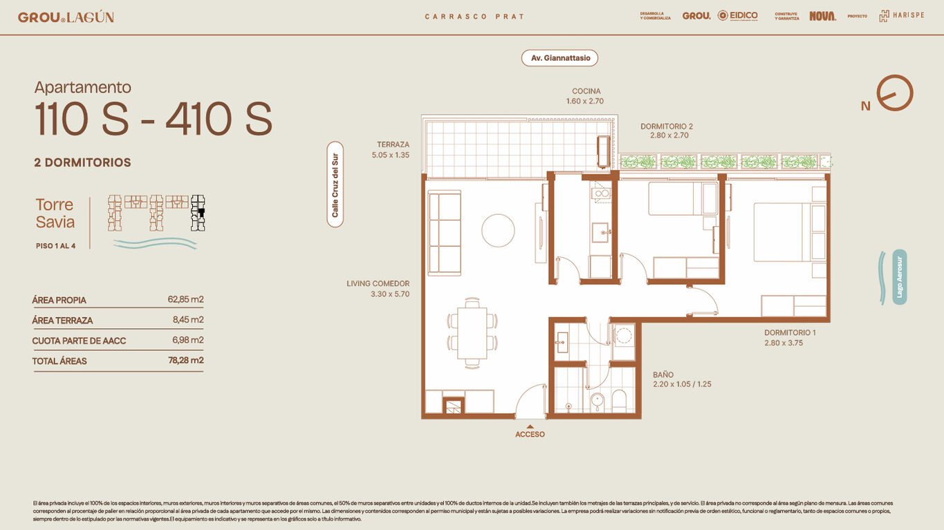 Apartamento de 2 dormitorios con terraza en Distrito Carrasco Prat.Viví frente al lago Aerosur, a minutos del Aeropuerto Internacional de Carrasco, en un entorno natural único y a pocos minutos de la ciudad.