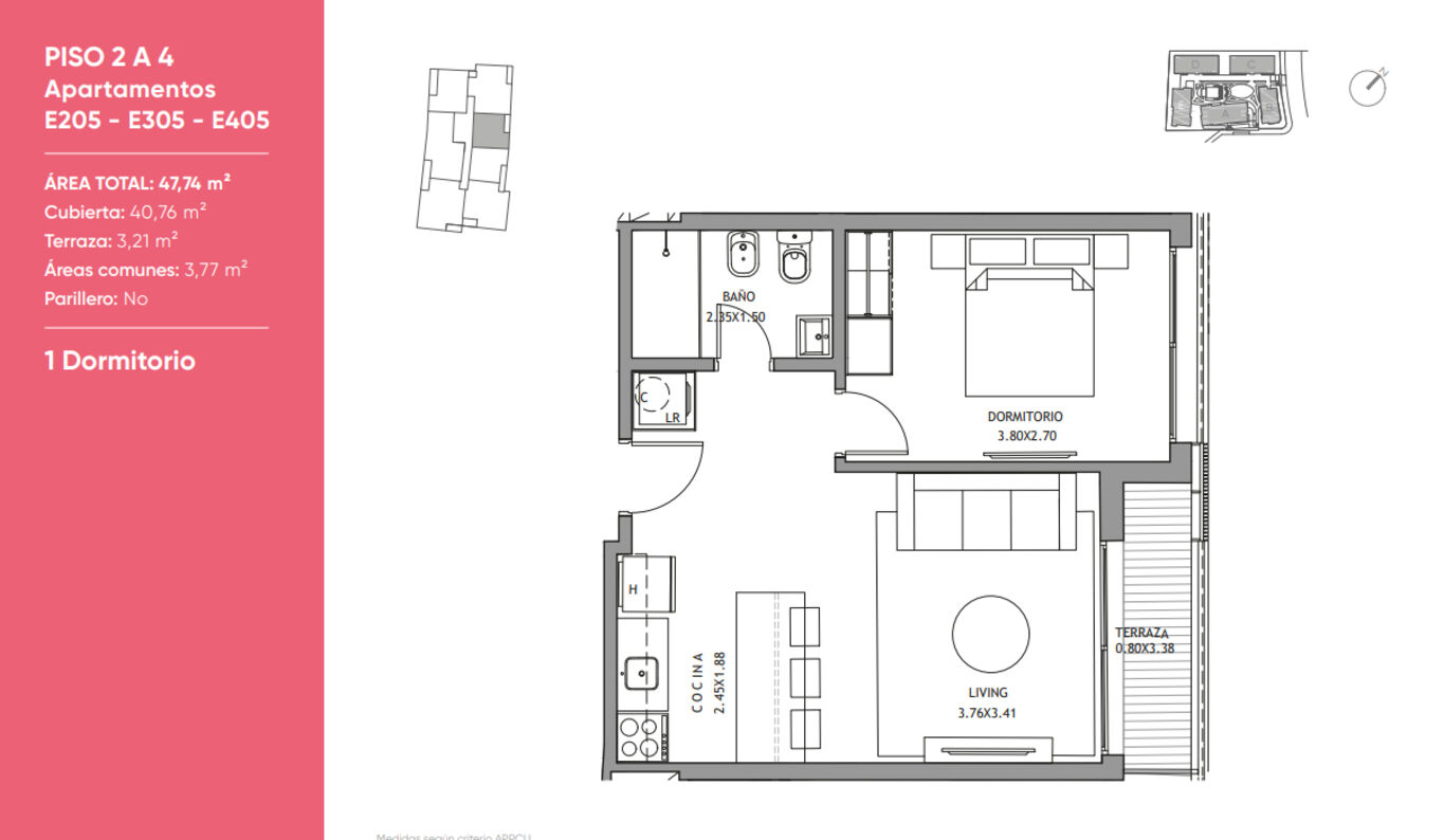 Excelente apartamento de 1 dormitorio ubicado en el exclusivo complejo cerrado Be Park Life.La unidad cuenta con 47 m² bien distribuidos y una terraza con vista completamente despejada. Ambientes modernos, luminosos y funcionales.